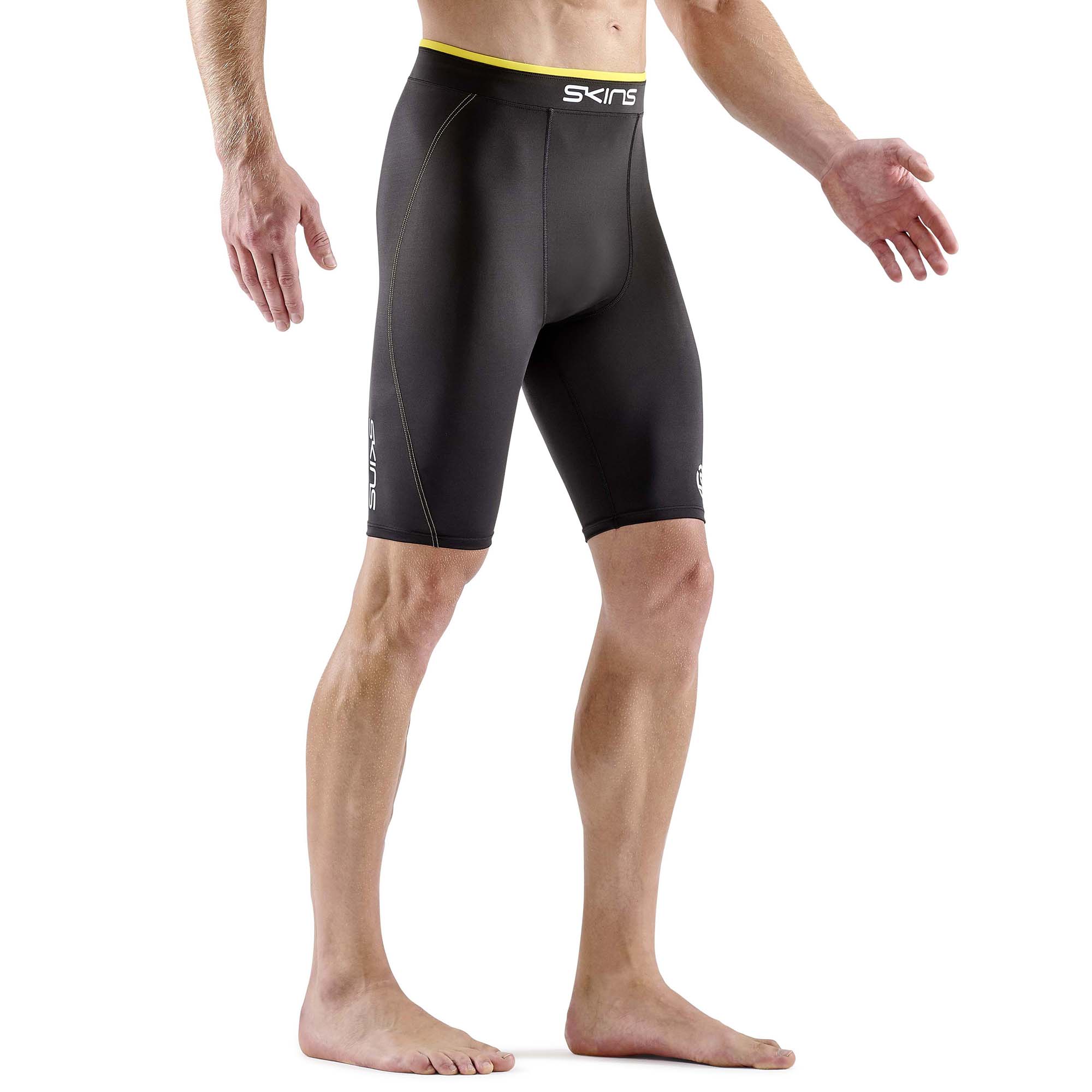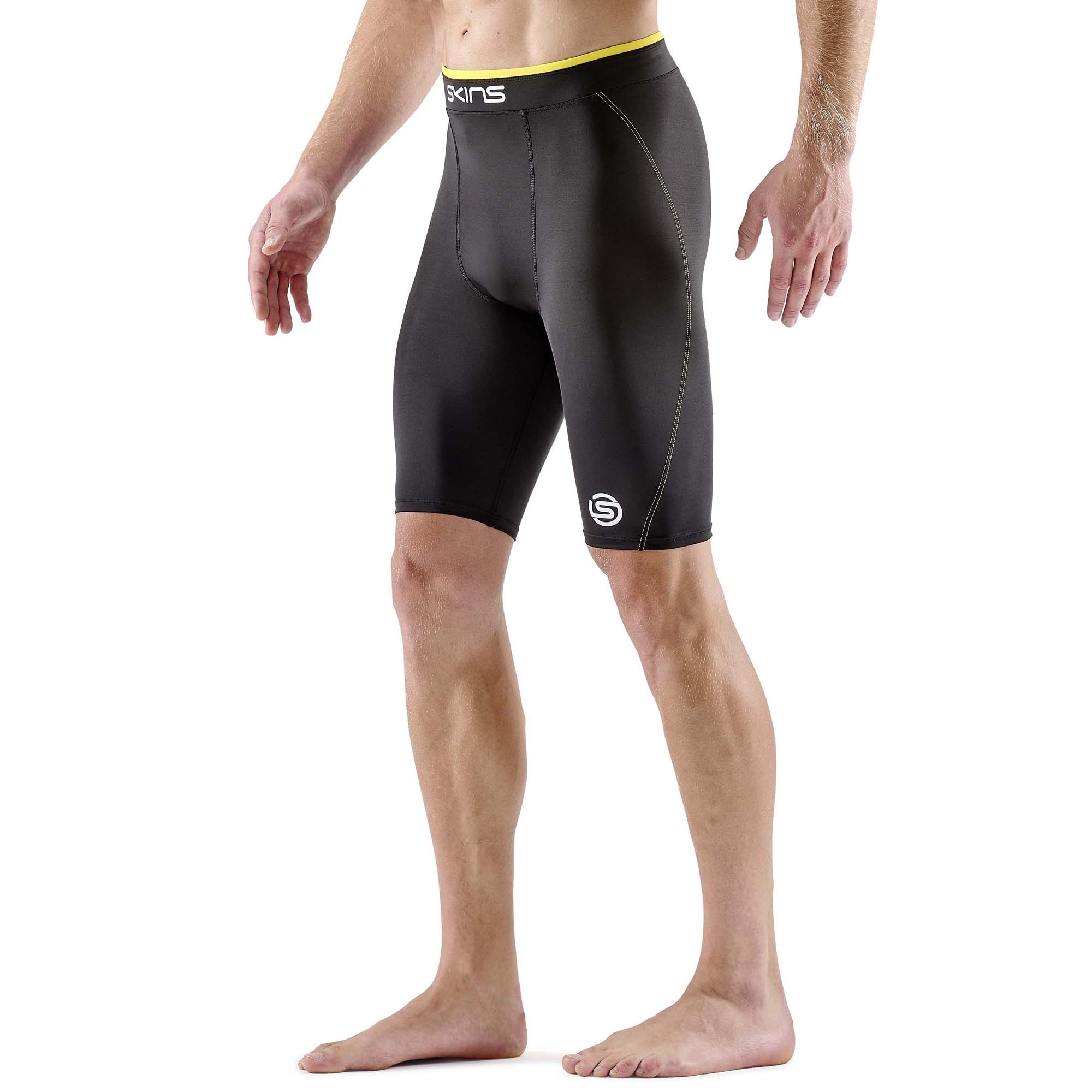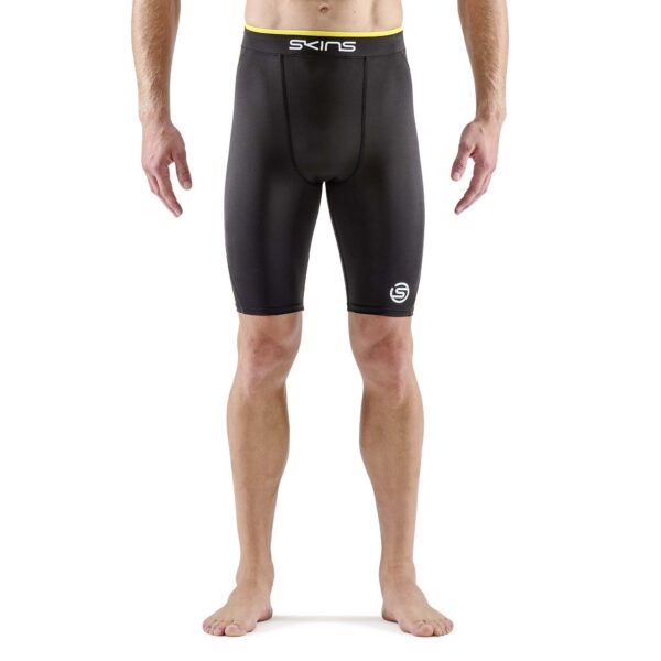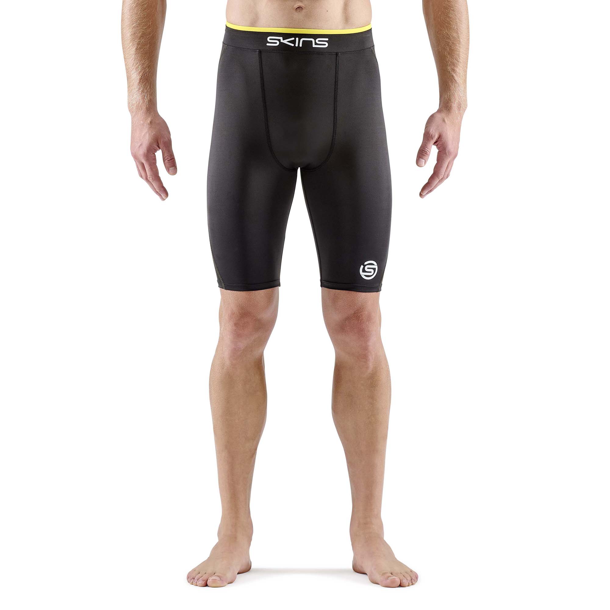 SKINS SERIES-1 MENS DOUBLE WAISTBAND HALF TIGHTS Black/Zest