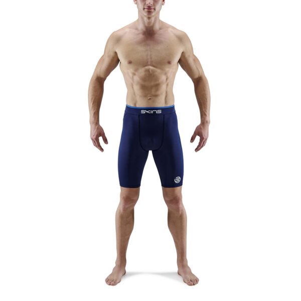 SKINS SERIES-1 MENS DOUBLE WAISTBAND HALF TIGHTS Navy Blue/Strong Blue