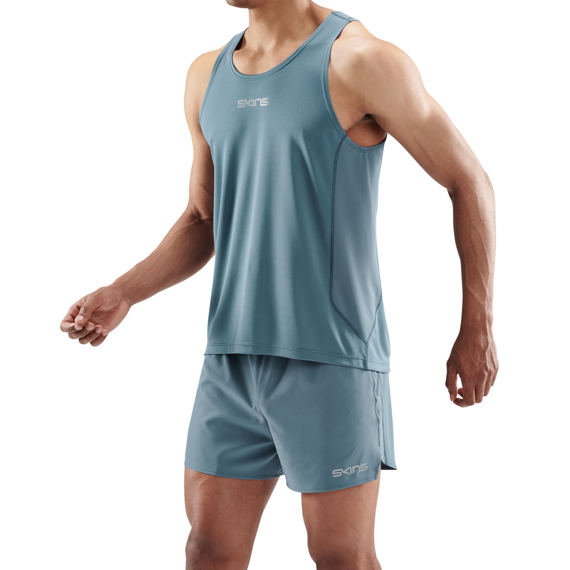 SKINS SERIES-3 MEN’S RUNNING SINGLET BLUE GREY