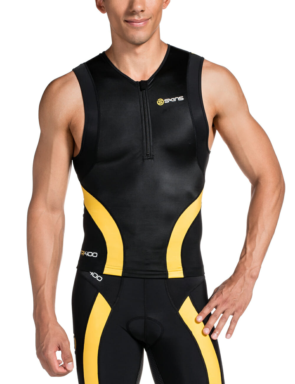 Tri400 M Top Sleeveless w Zip Black/Yellow