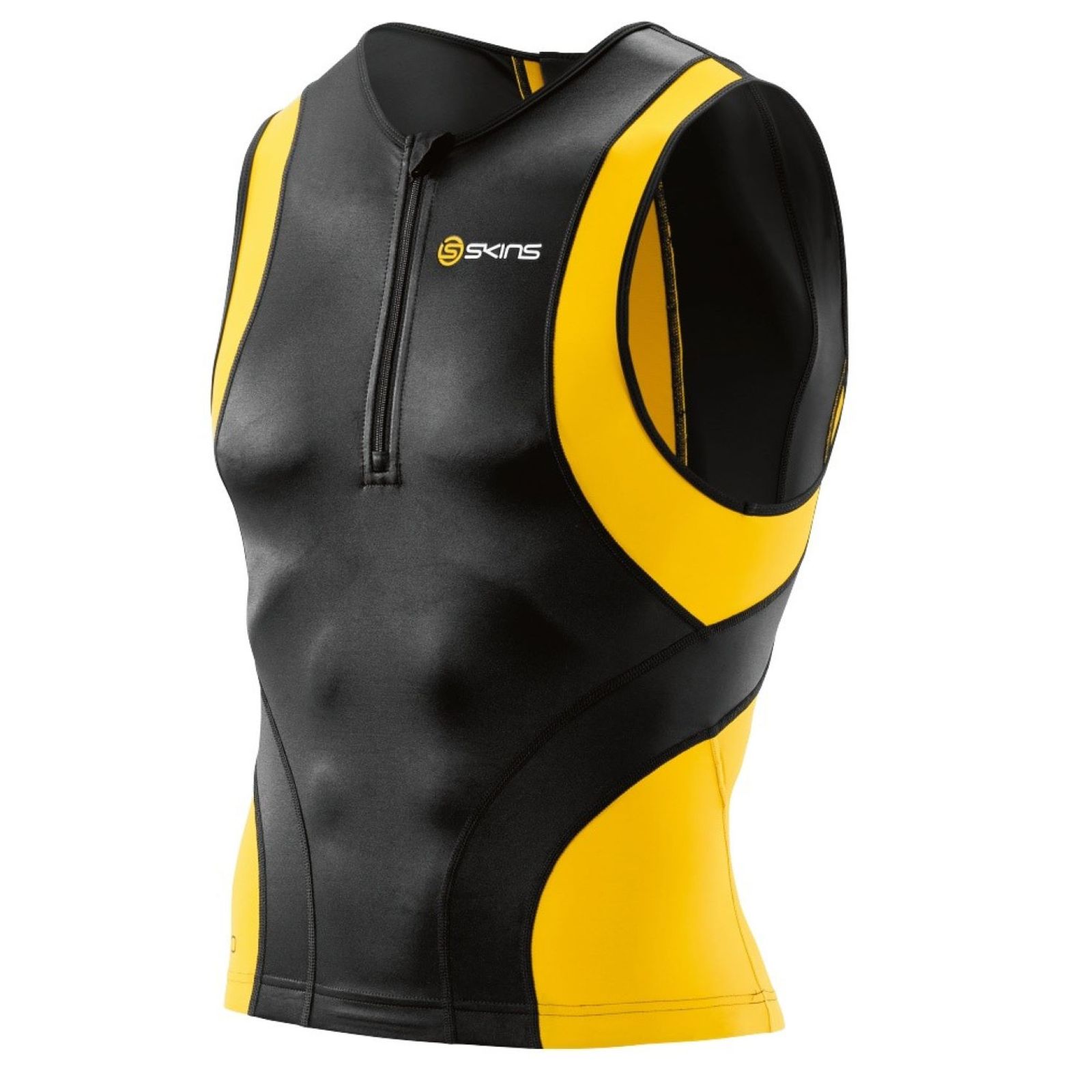 Swim, bike, run, and fly past your competitors in SKINS TRI400 Sleeveless Top with Front Zip. With strategically placed high-tech slimy fabric that reduces drag in the water and dries quickly on land, our sleeveless top will power you through training sessions to race day, every leg of the way.