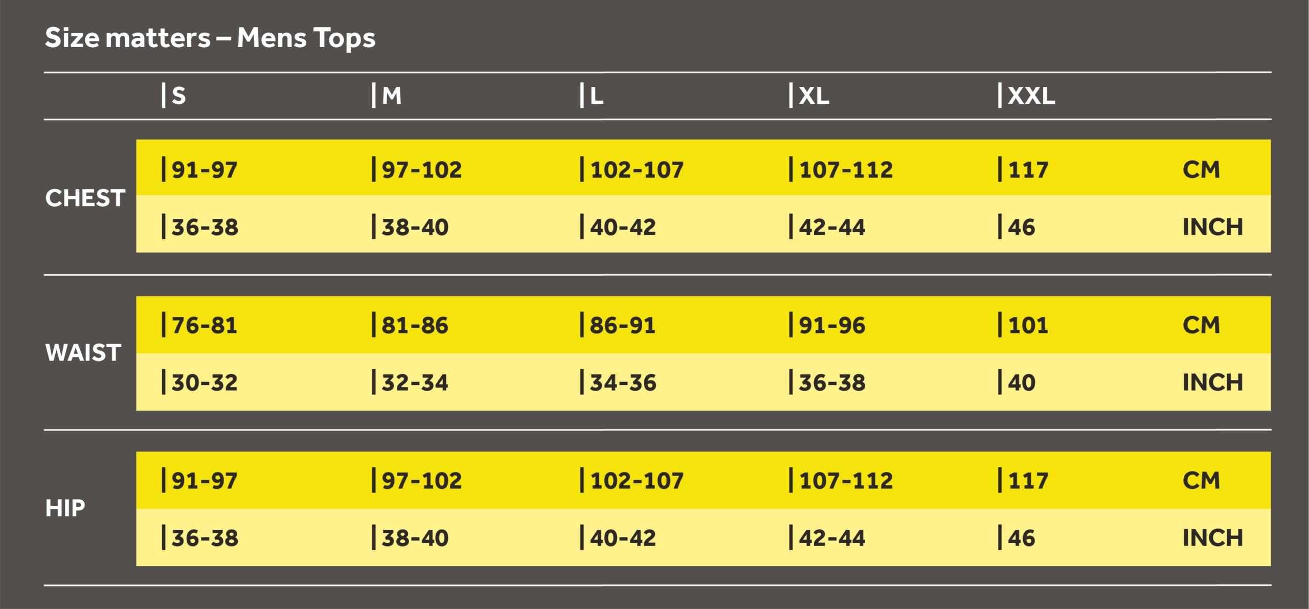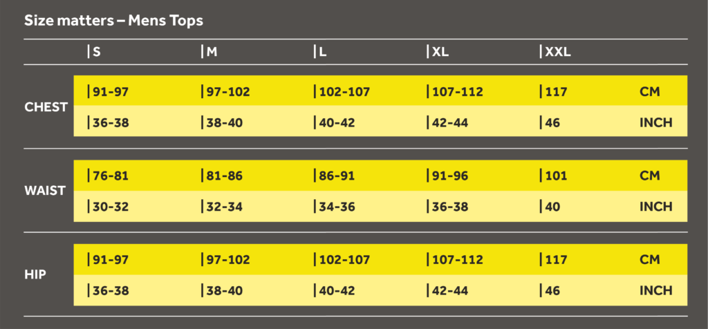 You can be a little more relaxed about our activewear. Not because it’s not important but because size isn’t as critical to the garment’s performance as it is for our Compression Sportswear. That being said, keep in mind that the range has an athletic cut for optimum comfort and minimal drag.