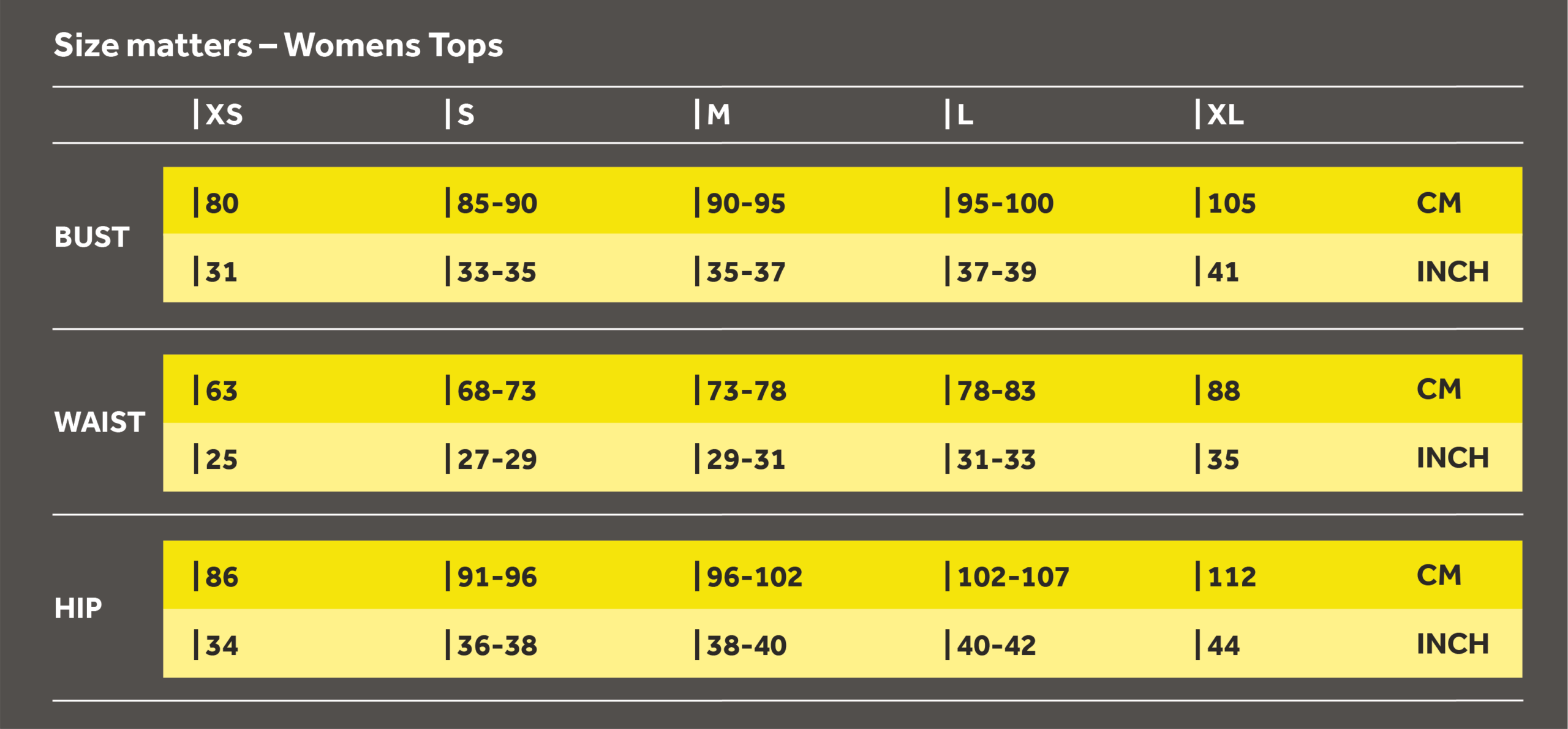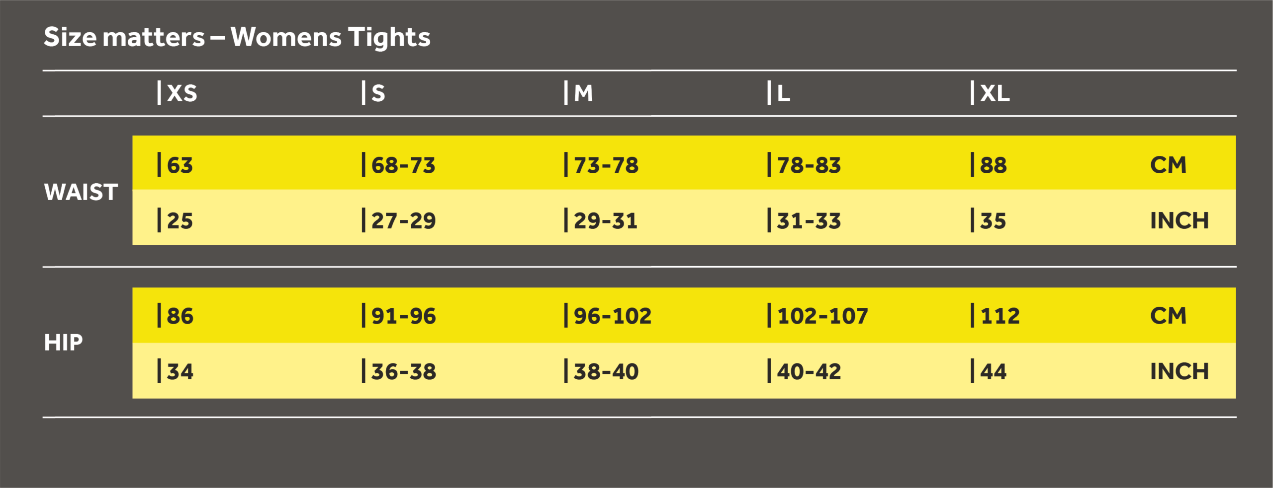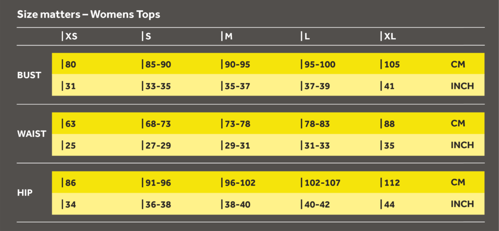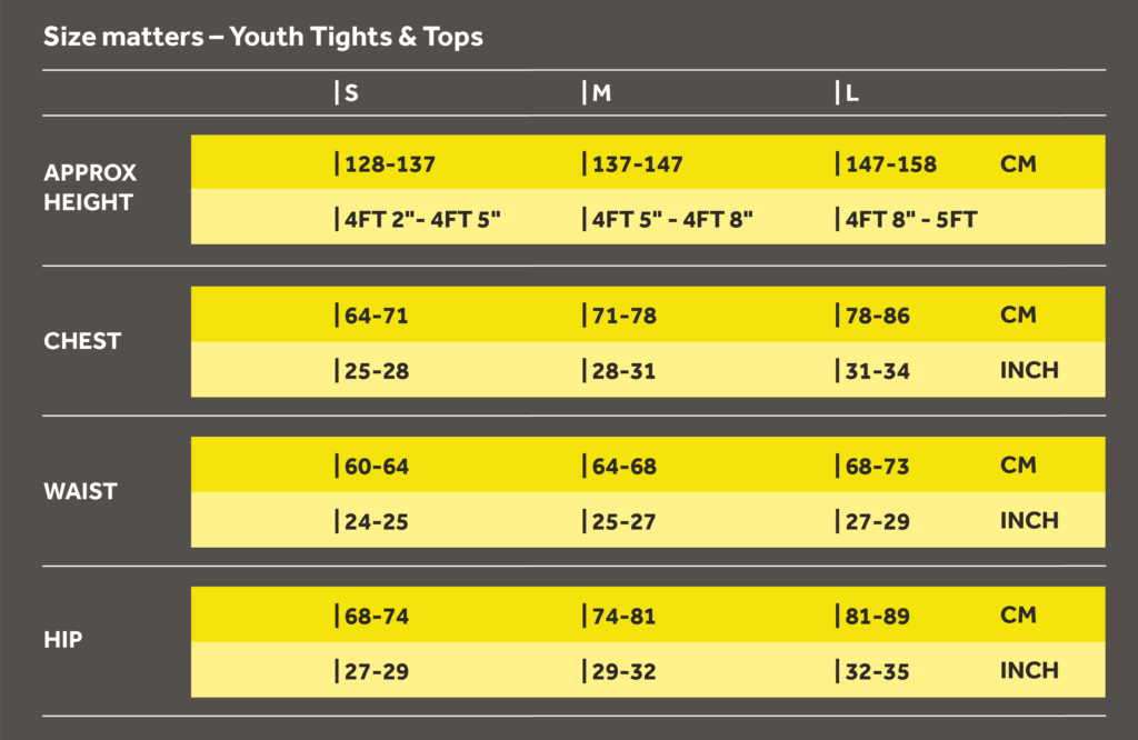 Bordering two sizes? Suppose when finding out your size from the guides below, you sit on the line between two sizes. If that’s the case, we recommend choosing the smaller size for tights, if you have an athletic body type, otherwise chose the larger size. We always recommend choosing the larger size for tops. If you need further guidance in selecting the right size, get in touch with our customer service team – they’ll be more than happy to help.